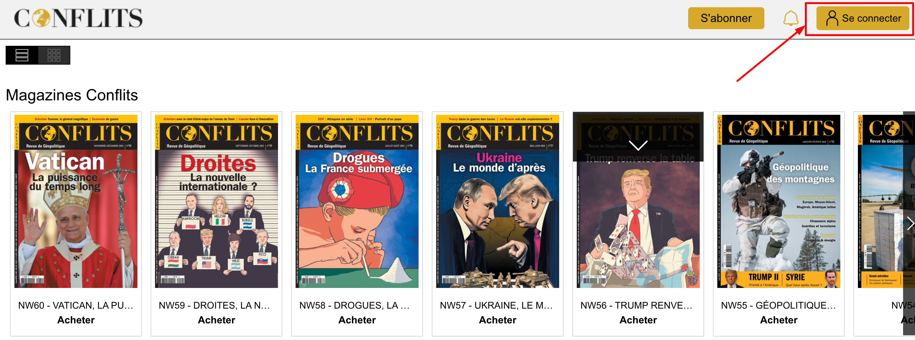 Lorsque vous êtes connecté(e), les magazines passent du statut "ACHETER" à "LIRE".